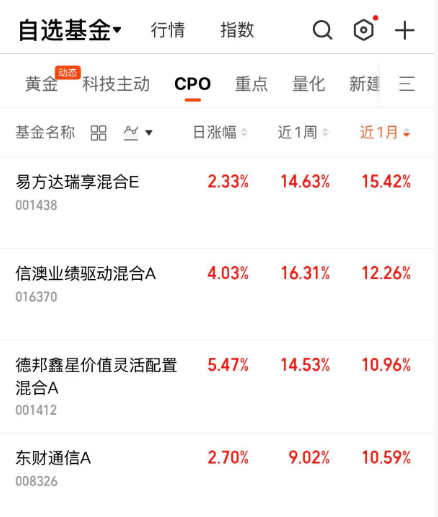 今日A股低开后震荡回升,科技板块午后发力反弹,CPO赛道持续领跑全场,行情重启信号明显!精挑细选后我锁定$易方达瑞享混合E(OTCFUND|001438)$,成立以来涨幅超 400%,硬核业绩碾压同类。基金经理10年深耕成长投资,调仓果断精准,不用自己费神盯盘,长期持有静待复利红利超省心~