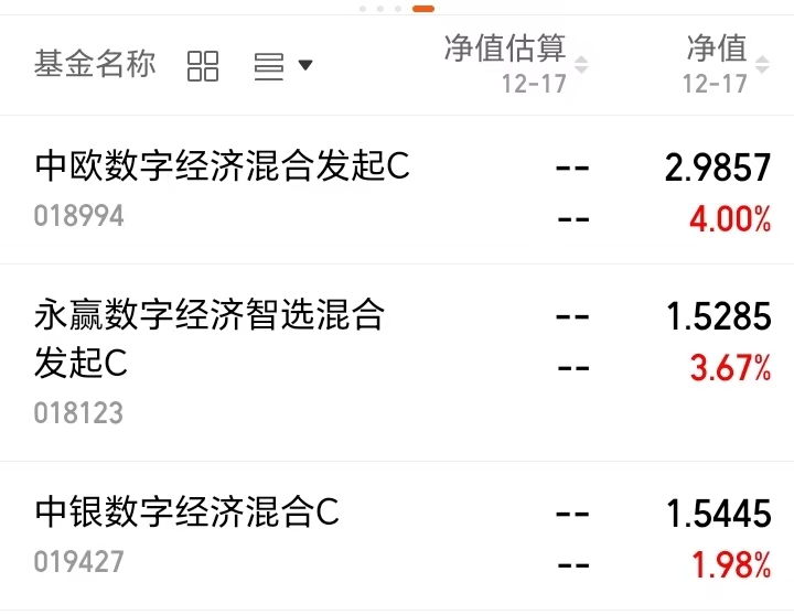 中欧数字经济混合C 今天上涨4%,表现出比同类产品更多的超额收益,不错呢;