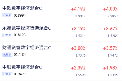 数字经济板块今日表现强势,中欧数字经济C报净值上涨4%,继续领跑科技类基金。近期受益于AI算力扩容、云计算、5G应用以及产业数字化升级的政策支持,板块景气度持续提升。基金精选具备技术优势和成长潜力的龙头企业,持仓集中度适中,同时兼顾产业链上下游机会,确保收益弹性。随着数字经济应用场景不断扩大,长期增长逻辑明确,中欧数字经济C有望持续分享行业红利,为投资者提供稳健且具成长性的布局机会。