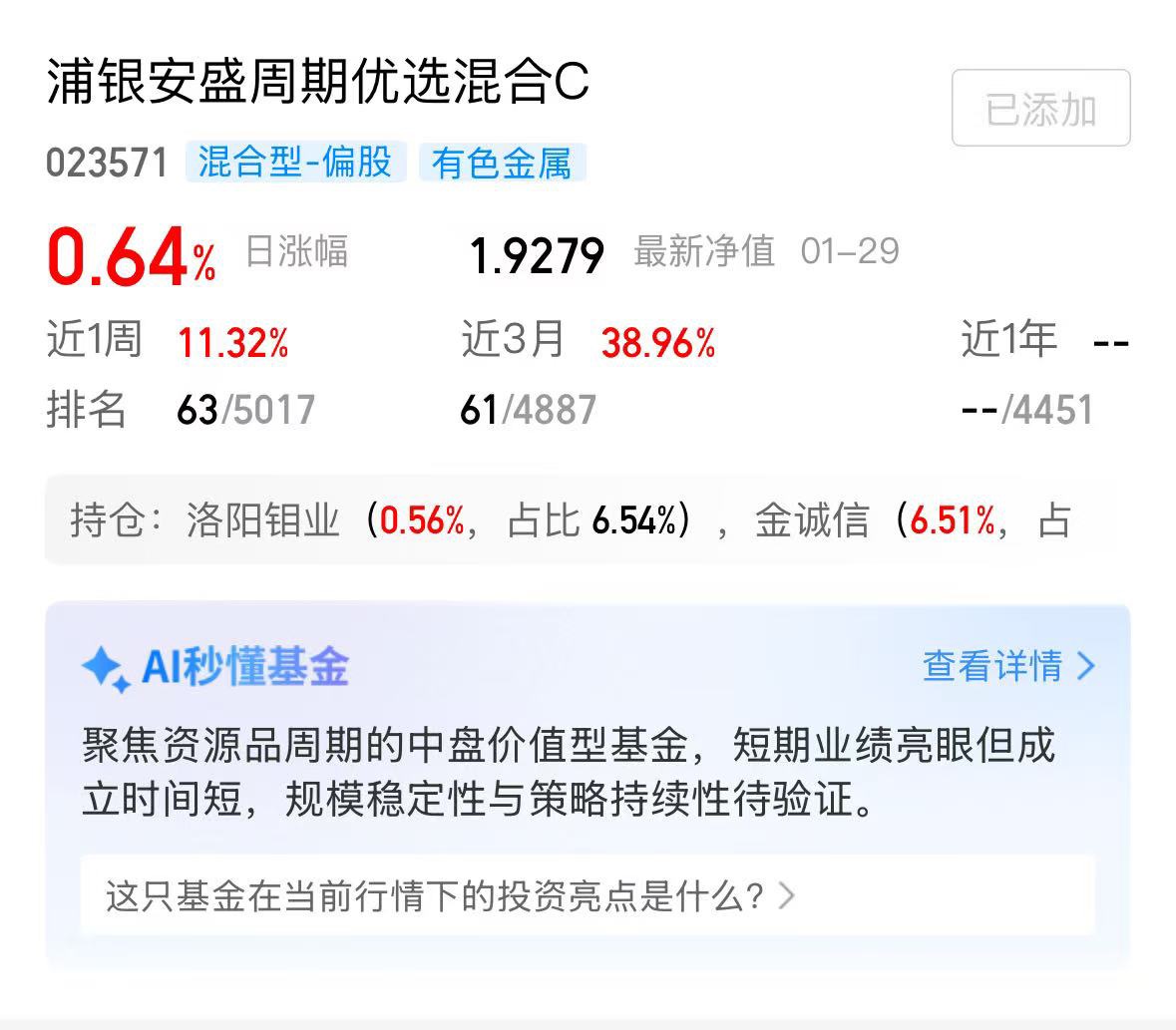 资金转战工业金属,浦银安盛周期优选昨日5.47%今日0.64%,提前布局享收益$浦银安盛周期优选混合C$