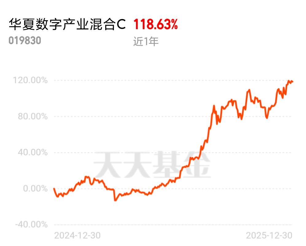 在有色里见好就收,切华夏数字产业混合C(019830)试水,一年118.63%的