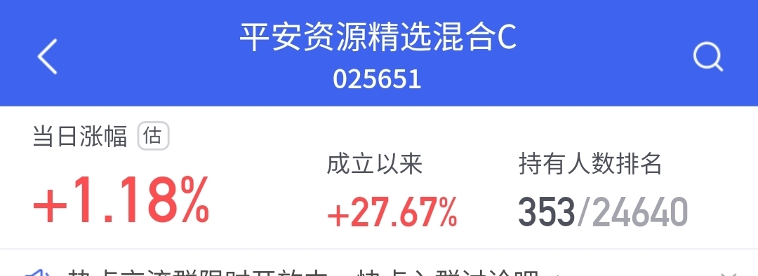 来了,今天权益市场还是很波动的,起起伏伏的,$平安资源精选混合C$昨晚涨超4%,