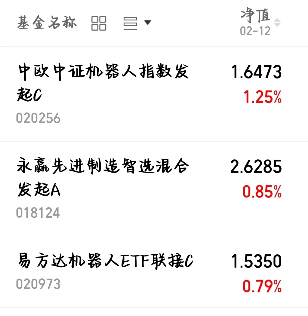 近期市场震荡,机器人赛道持续火热,中欧机器人C精准卡位风口,今天大涨1.25%。而且他紧跟中证机器人指数,覆盖人形机器人、工业机器人全产业链龙头,弹性十足。板块回调正是布局良机,长期成长空间大,不用自己选股,一键把握AI+机器人时代红利,震荡市抓主线更省心。