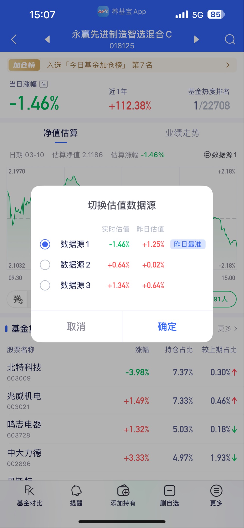 $永赢先进制造智选混合发起C[018125]$ 按照目前持仓的估值,仅供参考