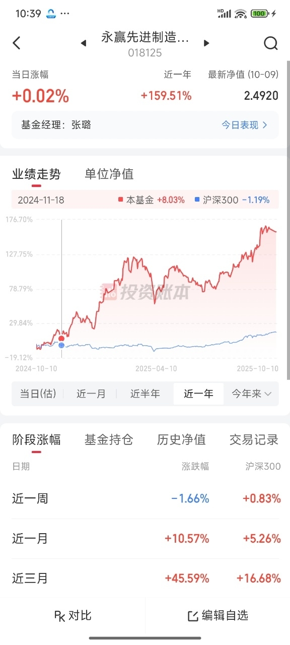 今天机器人板块继续上涨,热度还在升温,果断上车永赢先进制造混合C018125今天估值小涨0.02%,近三个月收益率43.17%,近一年收益率150.65%,这只基聚焦机器人和制造企业,它的业绩做的很不错,分批布局无疑更有性价比。