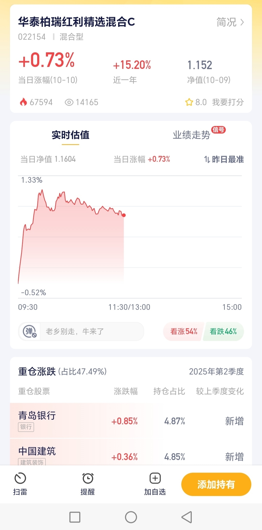 今天红利行情又“香”了!华泰柏瑞当日涨了0.73%,近一年更是涨了15.20%。咱普通人买基金不就图个跟对行情、赚点实在收益嘛。你看它重仓的青岛银行、中国建筑今天也都在涨,持仓挺靠谱。要是你也想在红利行情里捞点“肉沫”,华泰柏瑞这只基可以好好瞅瞅,说不定能让你的小钱包跟着“红”一把。$华泰柏瑞红利精选混合C$ #Figure 03人形机器人发布 量产在即#