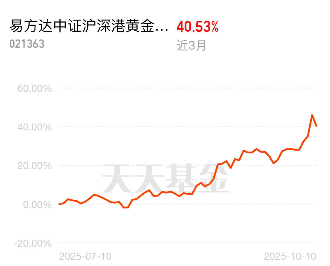 全球降息潮要来了,黄金肯定受益,现在行情已经提前反应了。易方达中证沪深港黄金产业股票指数C近3个月40.53%,上车就能享受到这波红利。