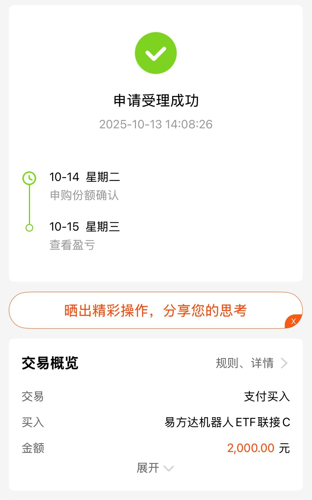 机器人今天跌了点,这是正常回调,刚好能加仓摊成本$易方达机器人ETF联接C$