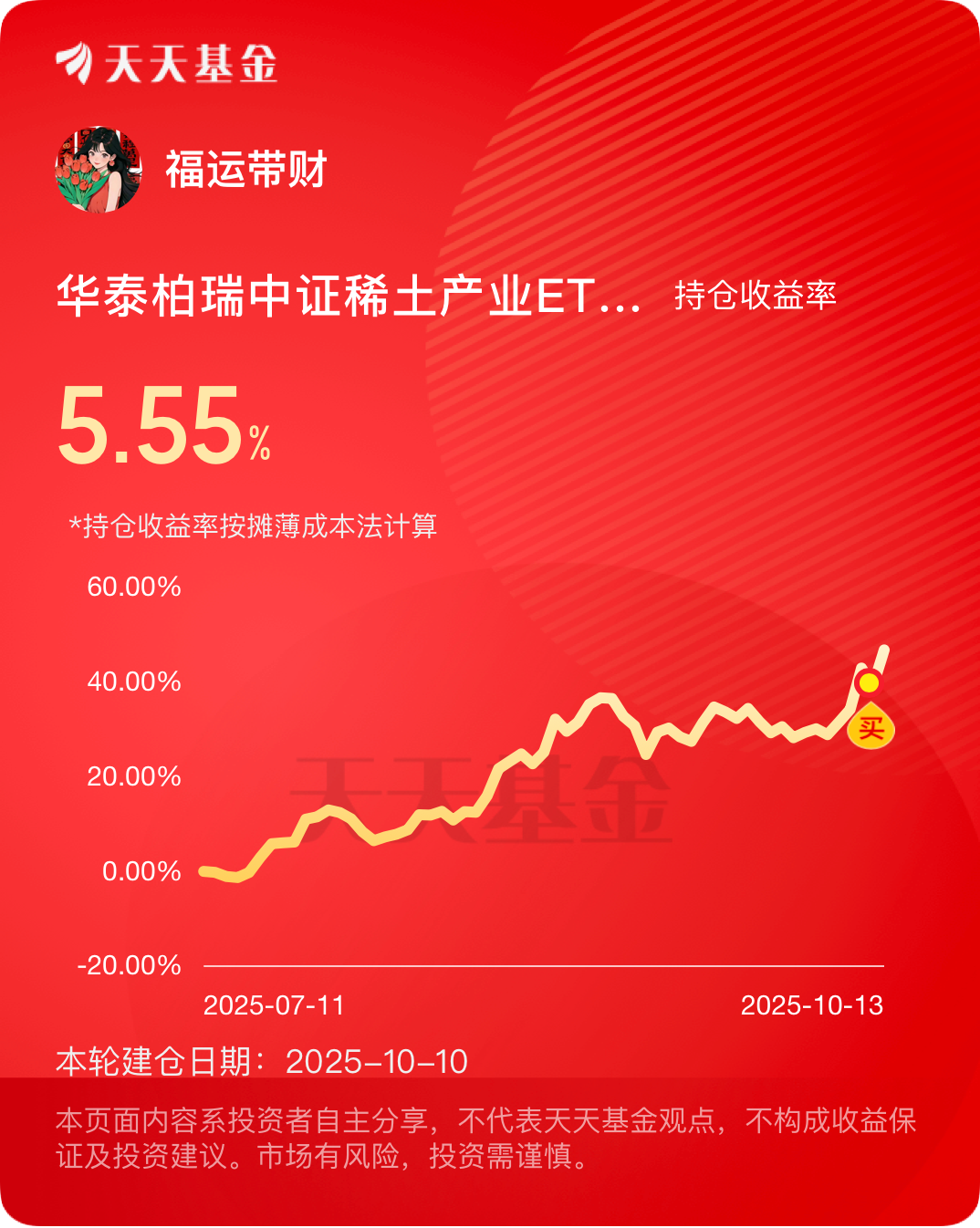 稀土这波行情太炸了!$华泰柏瑞中证稀土产业ETF发起式联接C$ 今天大涨5.56%,三个月45%涨幅,一年收益逼近80%!战略资源+关税反制,这才是真正的价值重估!#晒收益# #稀土价格暴涨37%!稀土板块狂飙# #券商把脉:冲击小于4月 黄金坑再现?# #全球市场深夜暴跌!纳指重挫超3%#
