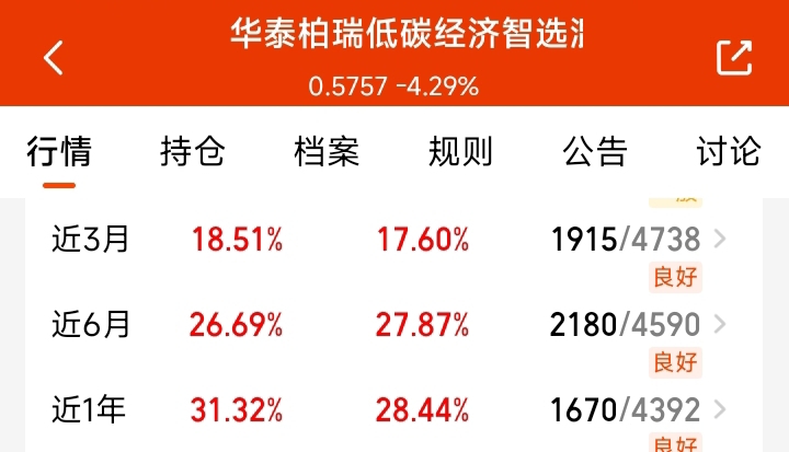 今天机器人概念掀涨停潮,$华泰柏瑞低碳经济智选混合C$今天估值也涨了3个点,绿色