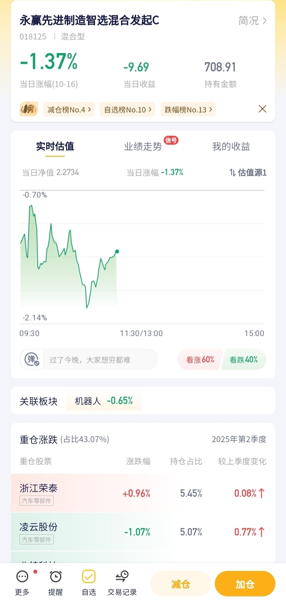 永赢先进制造智选混合发起今天跌了1.37%,先进制造板块今天表现不行,感觉行业景气度暂时没那么高,资金也不太看好,所以基金就下跌了~