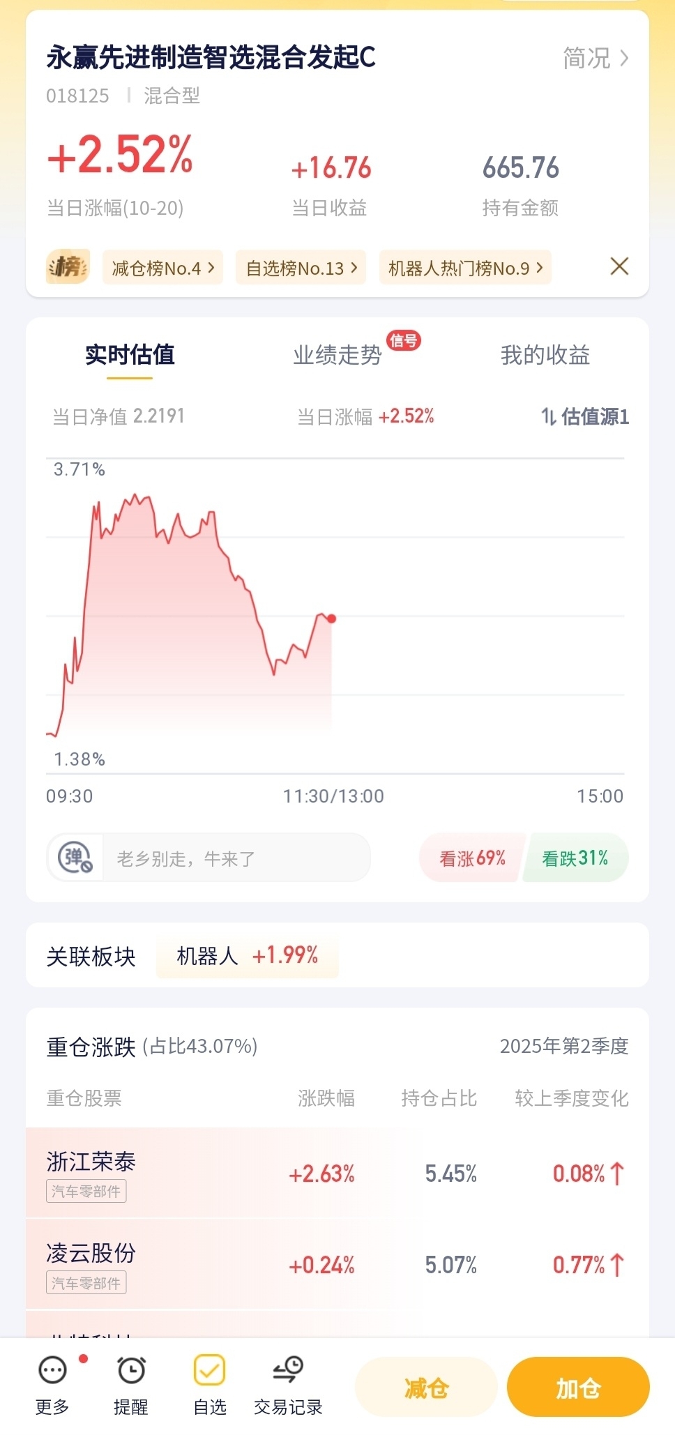 今天先进制造板块表现还行,资金也比较认可,带动这基金预估涨幅不错。先进制造领域有政策和产业发展支撑,后续应该还有机会~