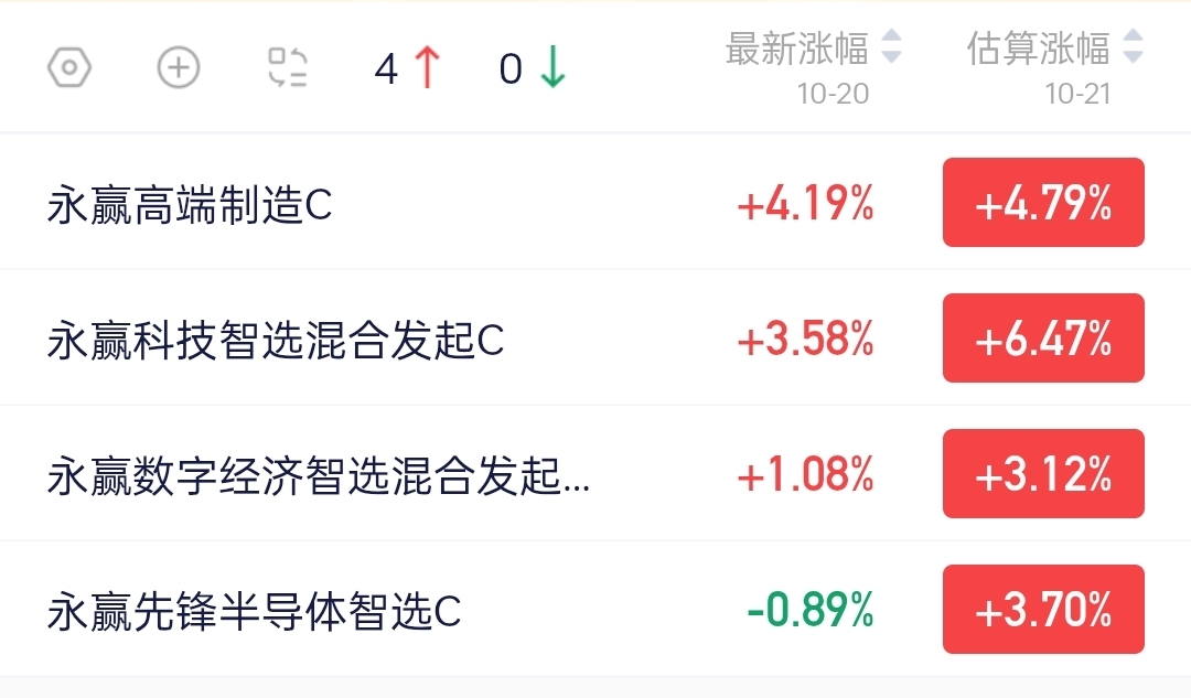 行情不错,看看今天的表现,永赢高端装备智选,目前最新估算+4.79%,永赢科技智