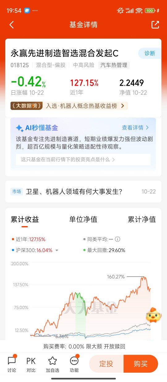 前期涨势猛的近期都在调整中,这只$永赢先进制造智选混合发起C$也在其中。首只聚焦