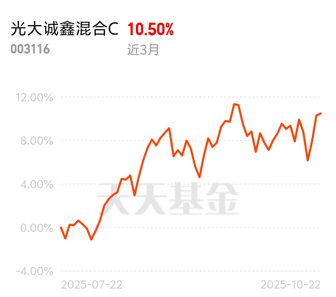 现在大家都在说市场在筑底,波动里藏着机会。光大诚鑫混合C近3个月涨10.50%,