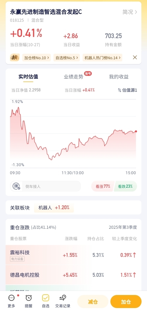 永赢先进制造智选混合发起今日预估涨幅0.41%!