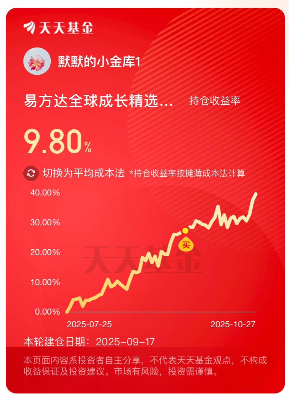 这段时间科技板块的中期趋势慢慢清晰了,降息也一直利好全球科技资产。美股AI、机器人技术在突破,A股在加速搞算力建设,港股互联网巨头的AI应用也在落地。易方达全球成长精选混合C刚好踩中了这些机会,近三个月涨了39.59% ,比同类好很多。它还能控制回撤,要是想中期布局科技,这款产品挺合适的。
