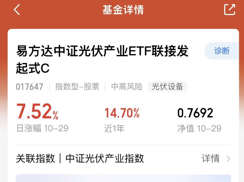 海外市场需求爆发,光伏一路飘红,昨天的涨幅很喜人$易方达中证光伏产业ETF联接发