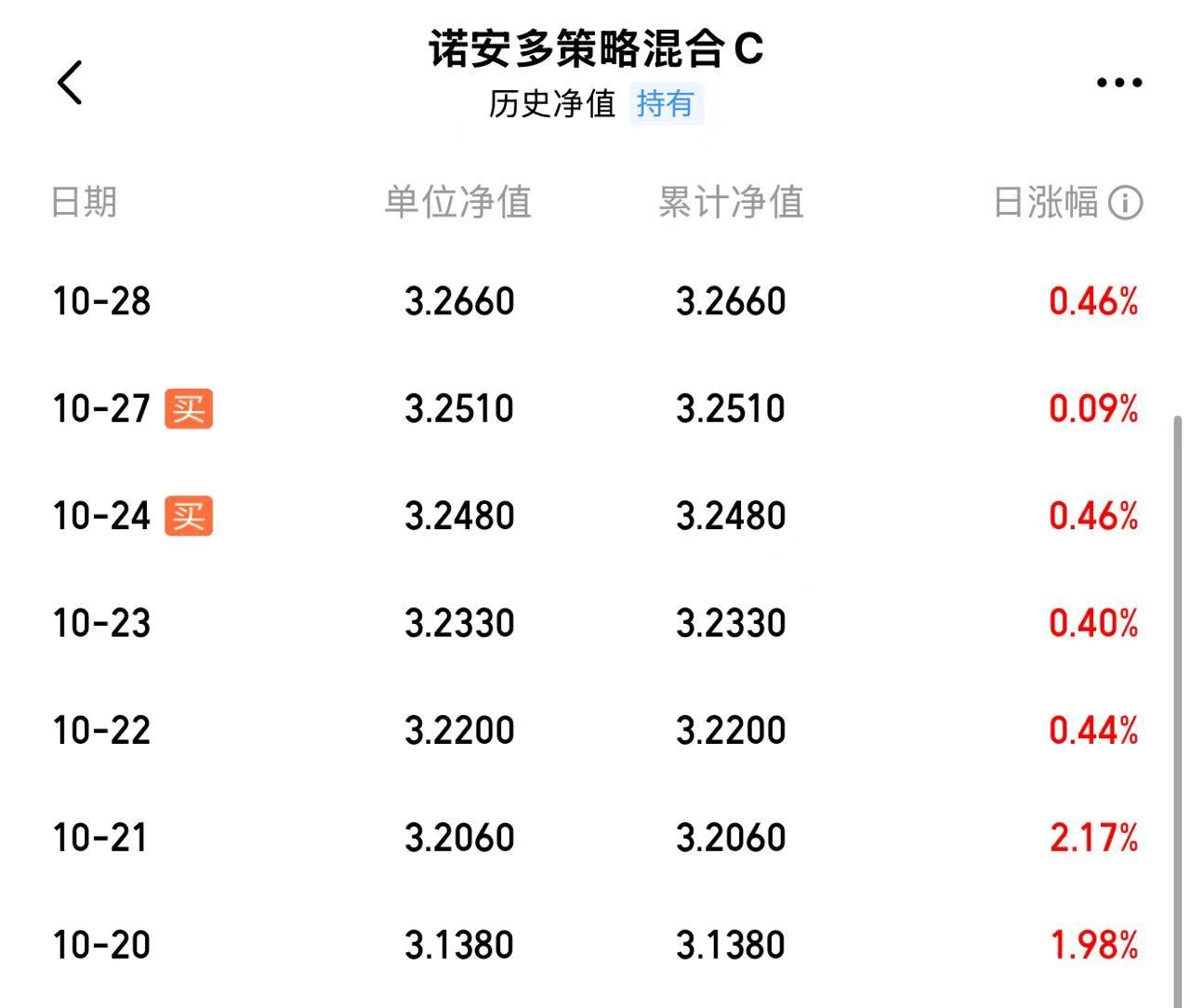 今天市场调整,诺安多策略混合C(023350)出现难得的小幅回调,我立即追加了仓位。对于这种多策略产品,每次调整都是上车良机!基金经理会利用市场波动优化持仓,低位捡拾优质筹码。相信用不了多久,就会证明今天的决策是多么正确。#11月基金投资策略#