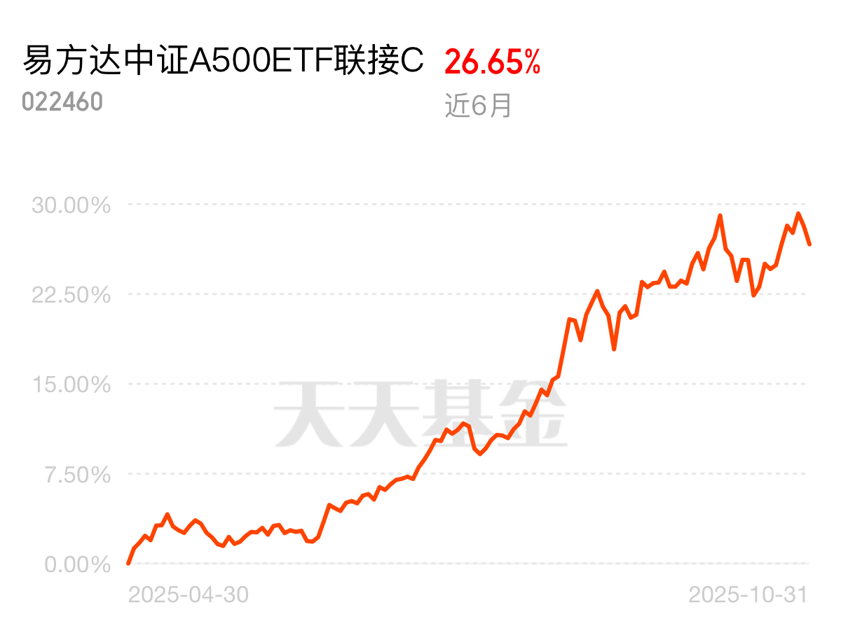 这段时间不少人盯着新质生产力相关的机会,中证A500在科技、制造这些领域权重不低。普通人想分杯羹可以看看易方达中证A500ETF联接C,近6个月收益有26.65%,不用自己费神选股。