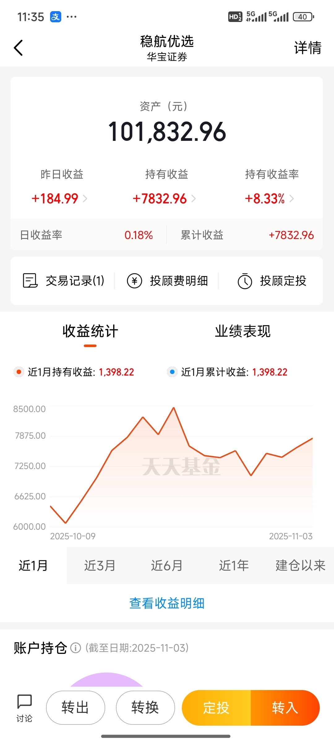 托红利方向大涨的福,稳航昨天又是赚钱的,今天红利方向继续逆势上涨,现在来看前面一段时间,减仓黄金和中证500,加仓红利和纳指是非常正确的!