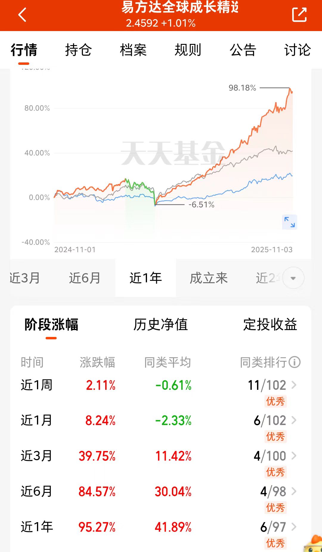 宝子们,最近科技板块短期回调,倒车接人啦,选科技要有全球眼光,因为全球科技板块各有优势,单看一个市场容易踏空或者风险较高,那怎么办呢?不妨就关注易方达全球成长精选混合(QDII)C012922,他的策略是投全球科技(A、H、美股都能投)灵活规避政治风险,同时可以把握多个市场的科技成长机遇。而且科技长期没走完,海内外都有很大机会,降息周期开启,全球科技类资产有望受益,所以就选这只布局全球科技的。