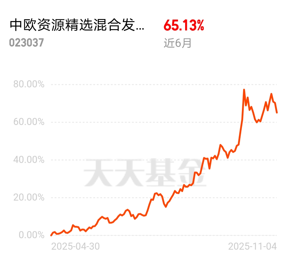 科技板块跌得没章法,我之前跟风加仓,现在账户天天绿,跌得我都不想看盘。还好有中欧资源精选混合C,近6个月涨65.13%,今天同类资源基金领涨,经理在锂电上游、黄金上布局集中,三季度又加仓,逻辑够硬。