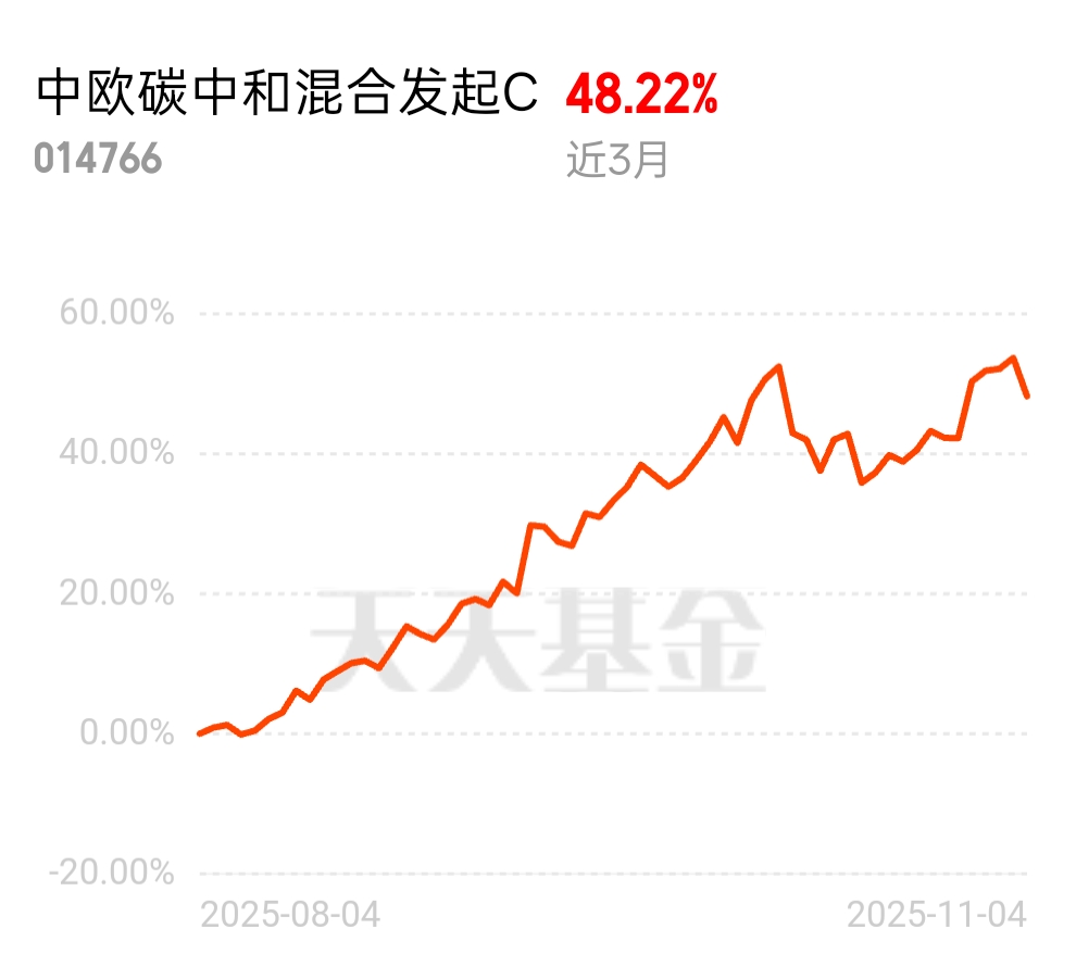 身边朋友都在吐槽科技股亏惨了,半导体和CPO跌不停。我倒是没那么愁,因为中欧碳中和混合C近3个月涨了48.22%,重仓的储能板块还在逆势涨,心态稳多了。