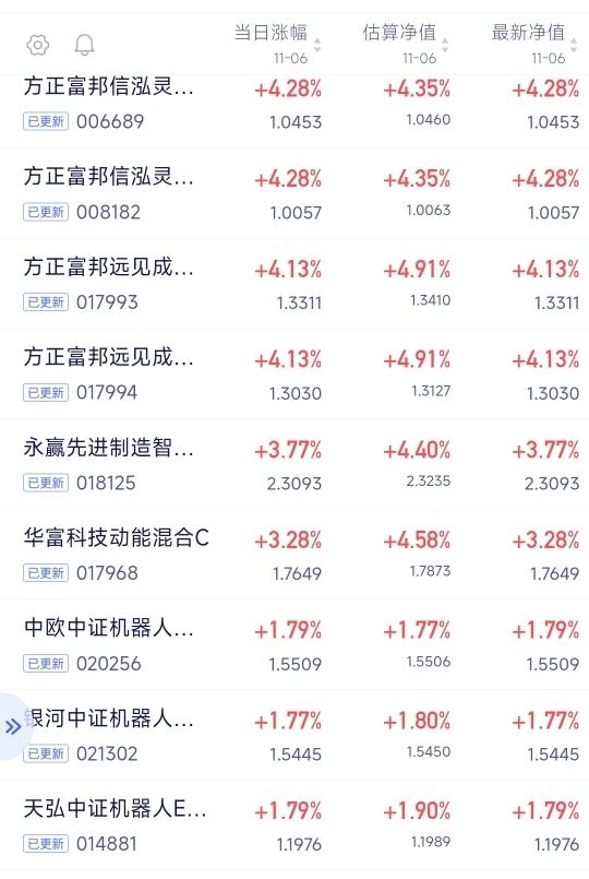 国家对人形机器人的扶持力度越来越大,专项基金、试点城市全安排上了。小鹏和特斯拉接连放大招,行业拐点已经出现。这波行情才刚开始,别急着跑。泓泓今天又强势领跑,持仓体验太舒服了!$永赢先进制造智选混合发起C$ 上涨了3.77%,$财通资管先进制造混合发起式C$ $方正富邦信泓混合C$ 上涨了4.28%。