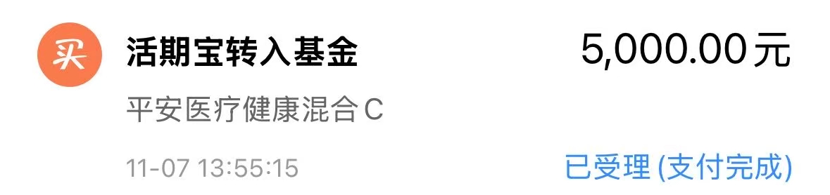 今天我建仓$平安医疗健康混合C(OTCFUND|020137)$ 5000元