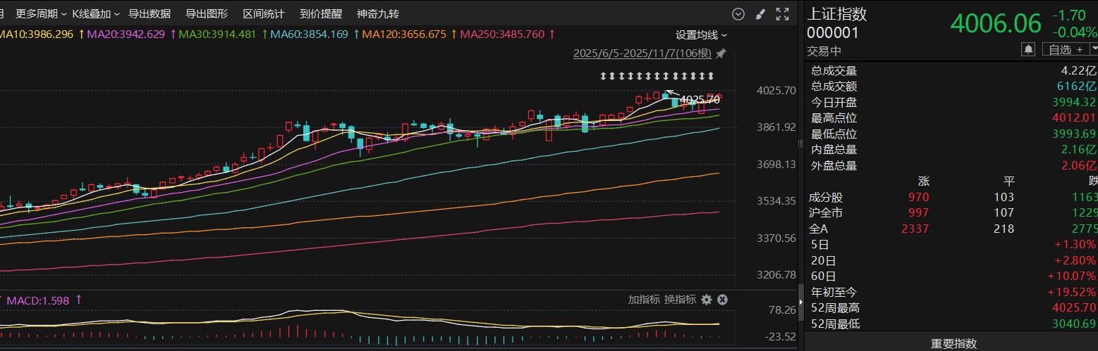 指数依然维持在4000,不过一直横在这,没有大的突破,昨天的上涨更像是反弹,反转还需要量能的进一步确认