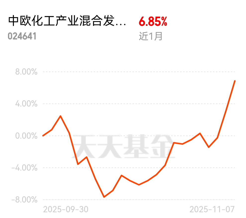 科技热点换得勤,追来追去没赚到钱,反而化工板块走势稳稳的。中欧化工产业混合C近1
