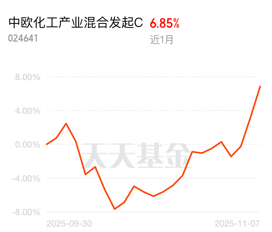 光伏板块今天没动静,化工板块却悄悄大涨。024641中欧化工产业混合C近1个月涨