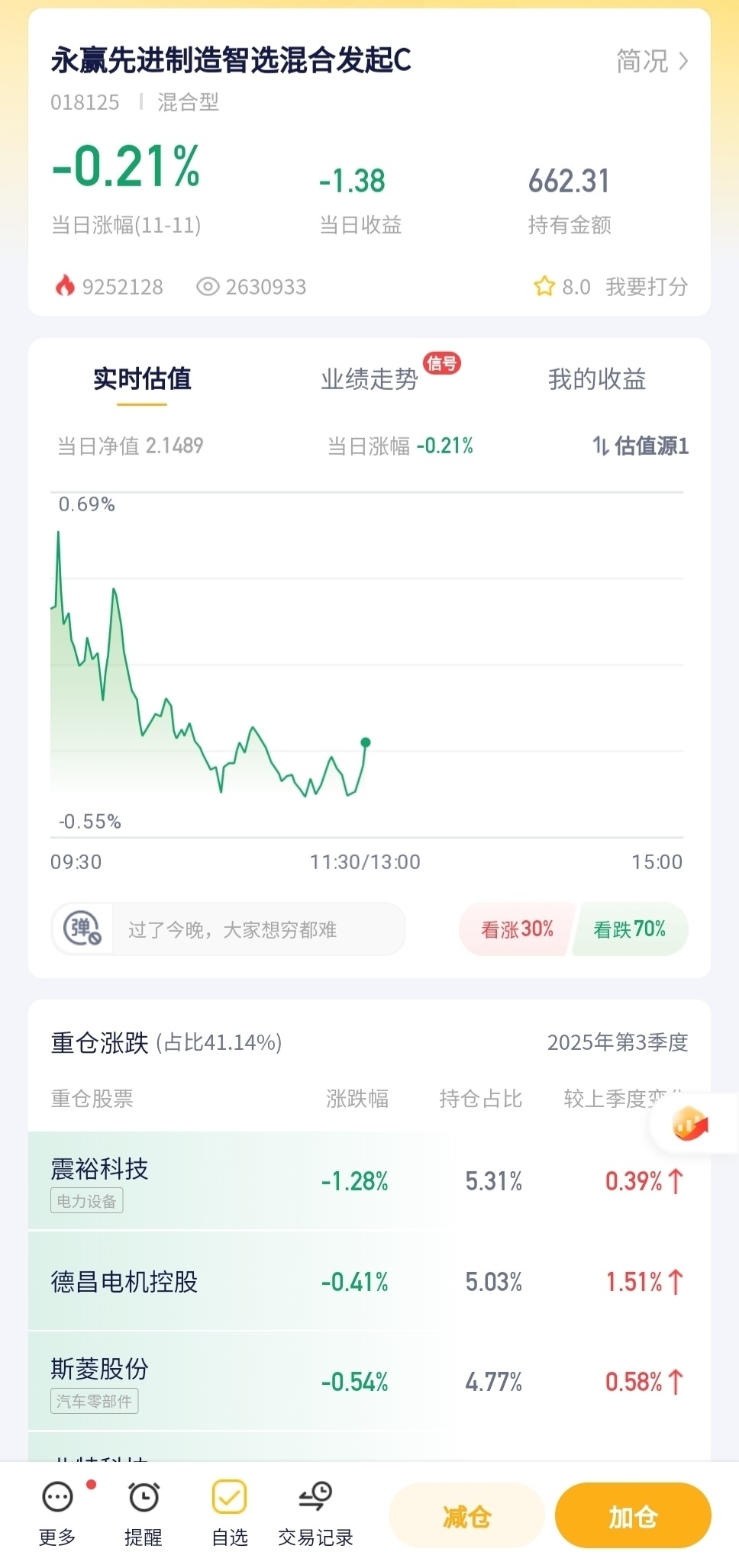 先进制造板块今天表现一般,这基金跟着小跌一点,不过跌幅不算大,后续看看能不能反弹回来。