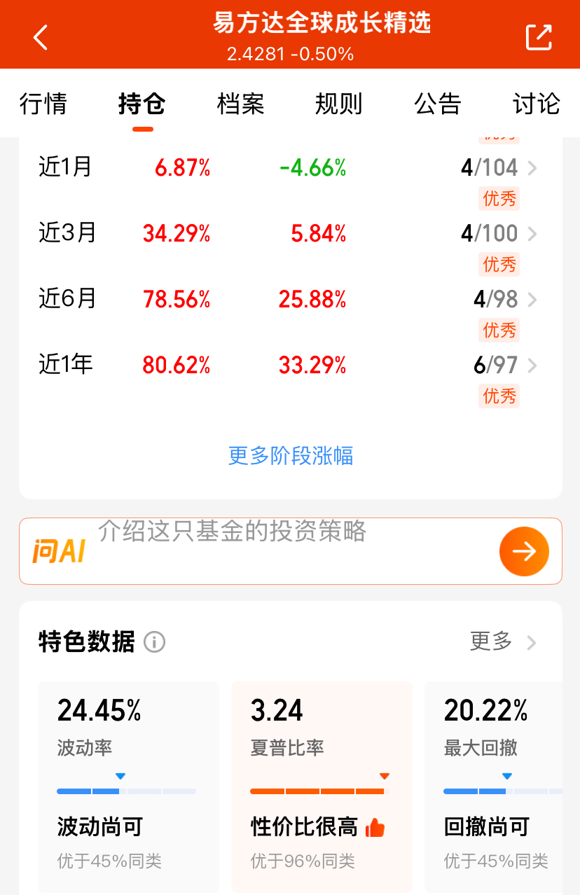 今天股市冲高回落,市场走势偏震荡,不过,随着降息周期的来临,还是利好全球科技类行情,尤其是美股、机器人、Al优势愈发凸显,其中,感觉易方达全球成长精选混合夏普率优秀,长期值得期待哈!#工信部:深入实施“机器人+”应用行动#