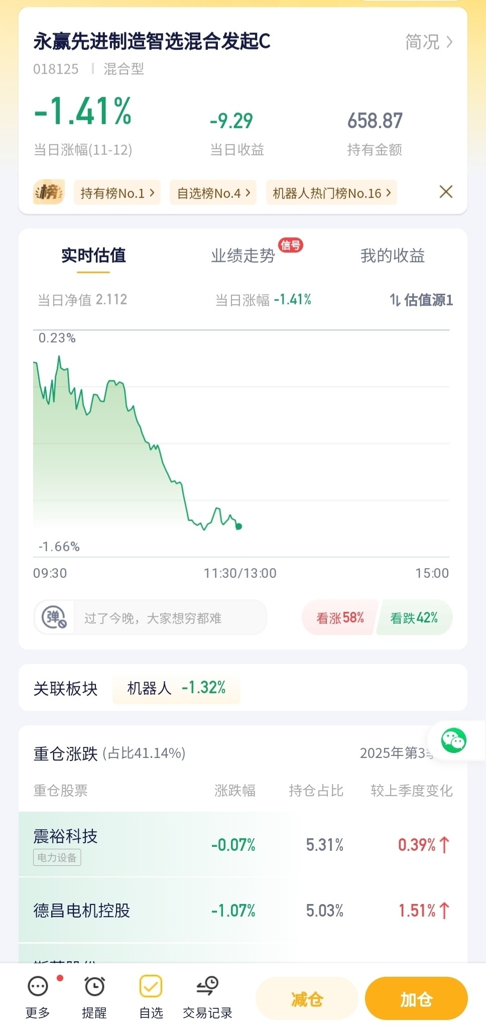 先进制造今天表现不行,永赢这只基金跟着跌,板块里的企业近期缺乏利好刺激,资金也不太愿意进来,它自然就跟着下跌了。