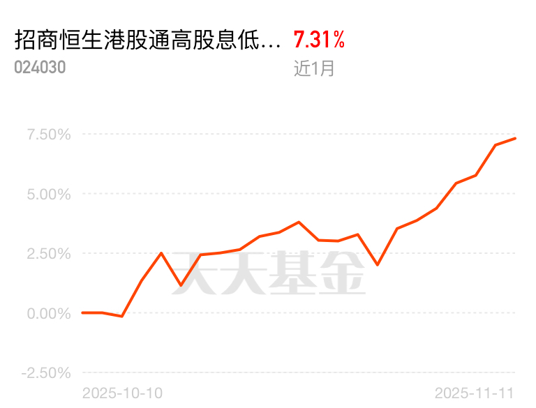 低波动高股息的产品在任何行情下都能稳定发挥自身实力,表现十分不俗亮眼。招商恒生港股通高股息低波动ETF联接C近1个月涨7.31%,月月分红,实力见证一切无需过多言语。$招商恒生港股通高股息低波动ETF发起式联接C$