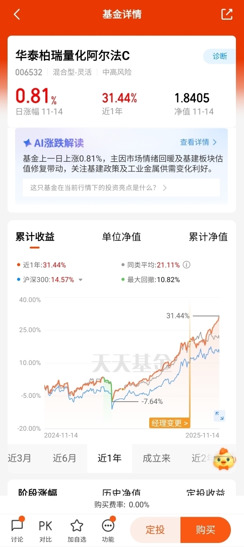 现在微盘股行情火热,政策支持+资金青睐,机会难得。我准备关注华泰柏瑞,它家量化策略靠谱,近三个月收益比热门微盘基金还突出,而且风险控制到位,能在行情中稳住盈利,不用担惊受怕,我准备把握这波红利。