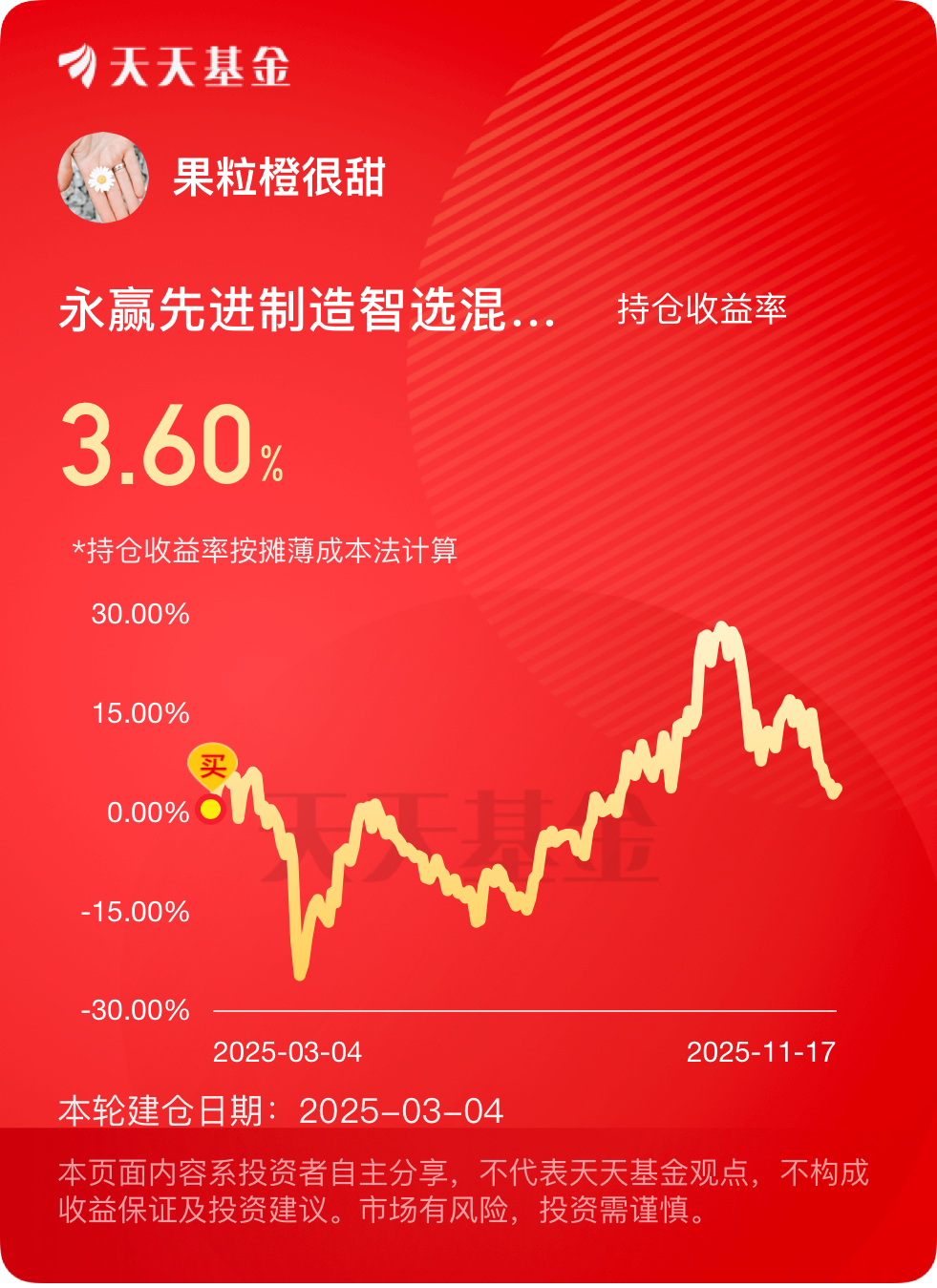 守了这么久,终于见红了,继续拿着看看吧。$永赢先进制造智选混合发起C$