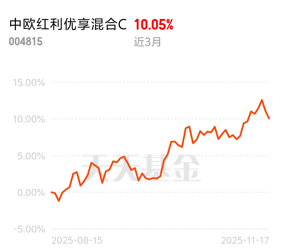 现在大家投资都越来越理性,不再盲目追热点,转而关注稳健的红利资产。中欧红利优享混合发起C近三个月涨了10.05%,基金经理主动规避分红陷阱,精选优质公司赚超额收益,比被动指数基金靠谱,加仓满2万减36。