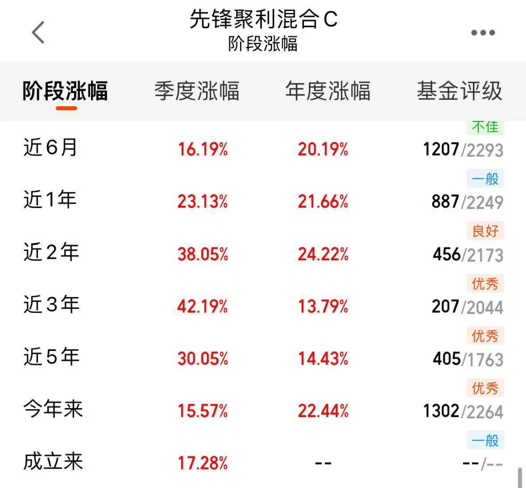 之前分批低吸终于迎来回报,先锋聚利C今日估值大涨,持仓的优质龙头企业近一年涨幅超