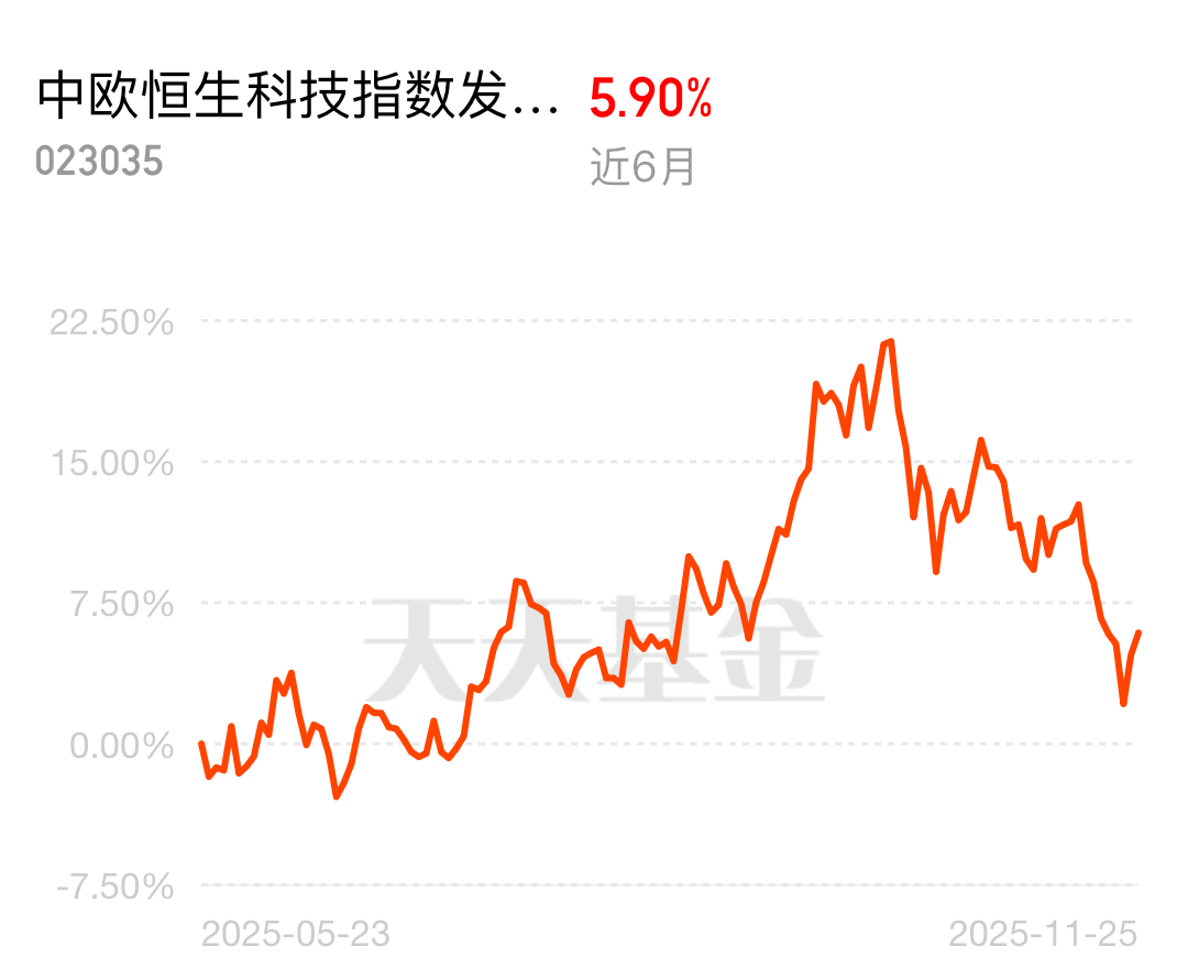 十五五”规划重点扶持科技创新,互联网、AI等龙头持续受益!市场连续两日反弹后今日开盘上涨,情绪回暖初期入手聪明,中欧恒生科技指数(QDII)C近6个月涨5.90%。