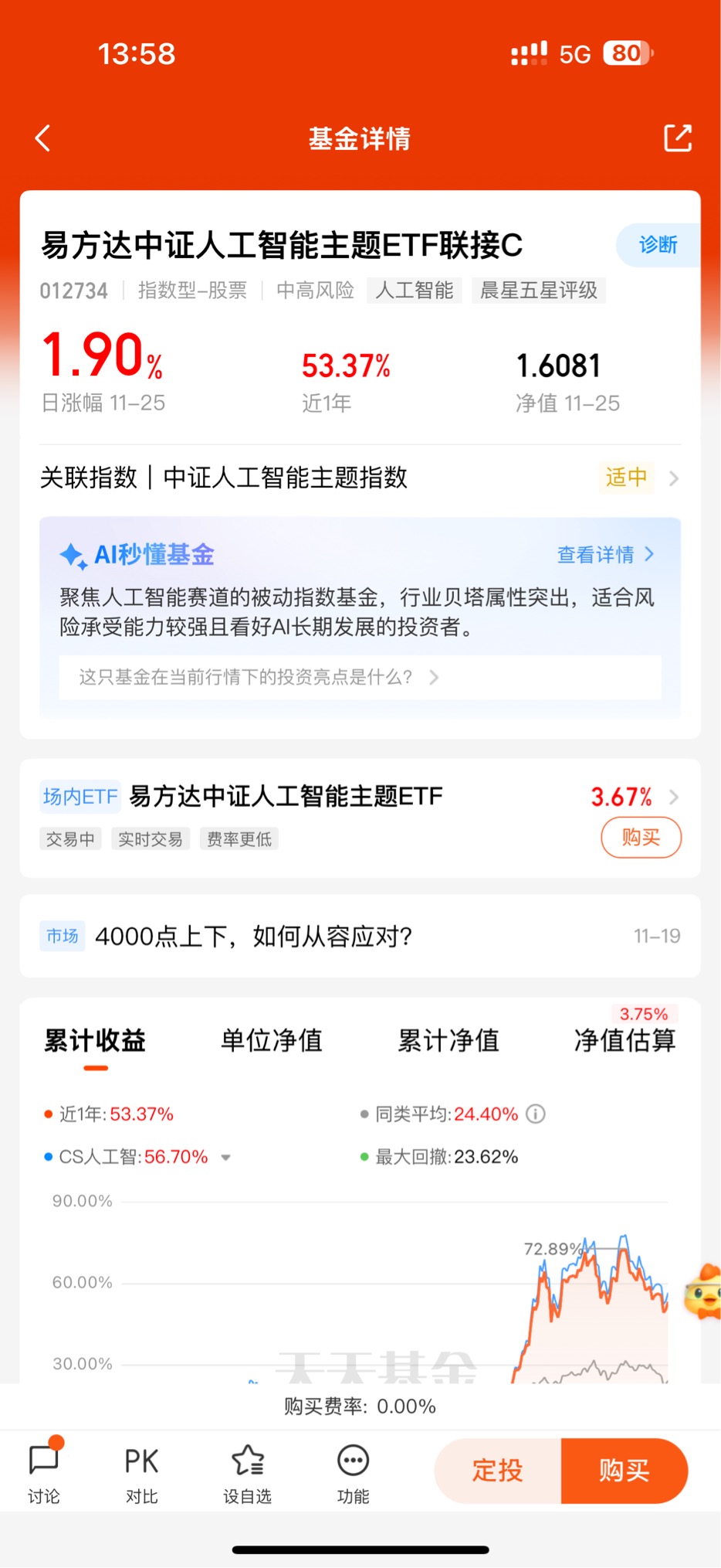 对于普通投资者而言,直接挑选个股难度较高,易方达中证人工智能主题ETF联接C:目前大涨3.75%!