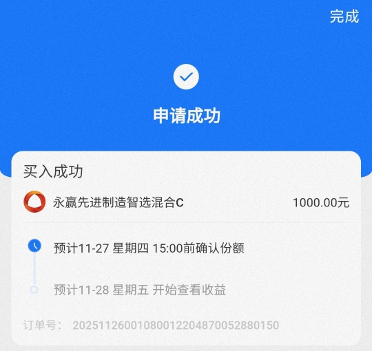 今日买入1000元 $永赢先进制造智选混合发起C$ ,该基金聚焦机器人方向,上周五大盘大跌,但是该基金逆势上涨0.5%,进入到本周大盘持续回暖,机器人也是持续上涨,该基金十大重仓股目前全面上涨,算上今天连续四天上涨,反弹力度比较强。