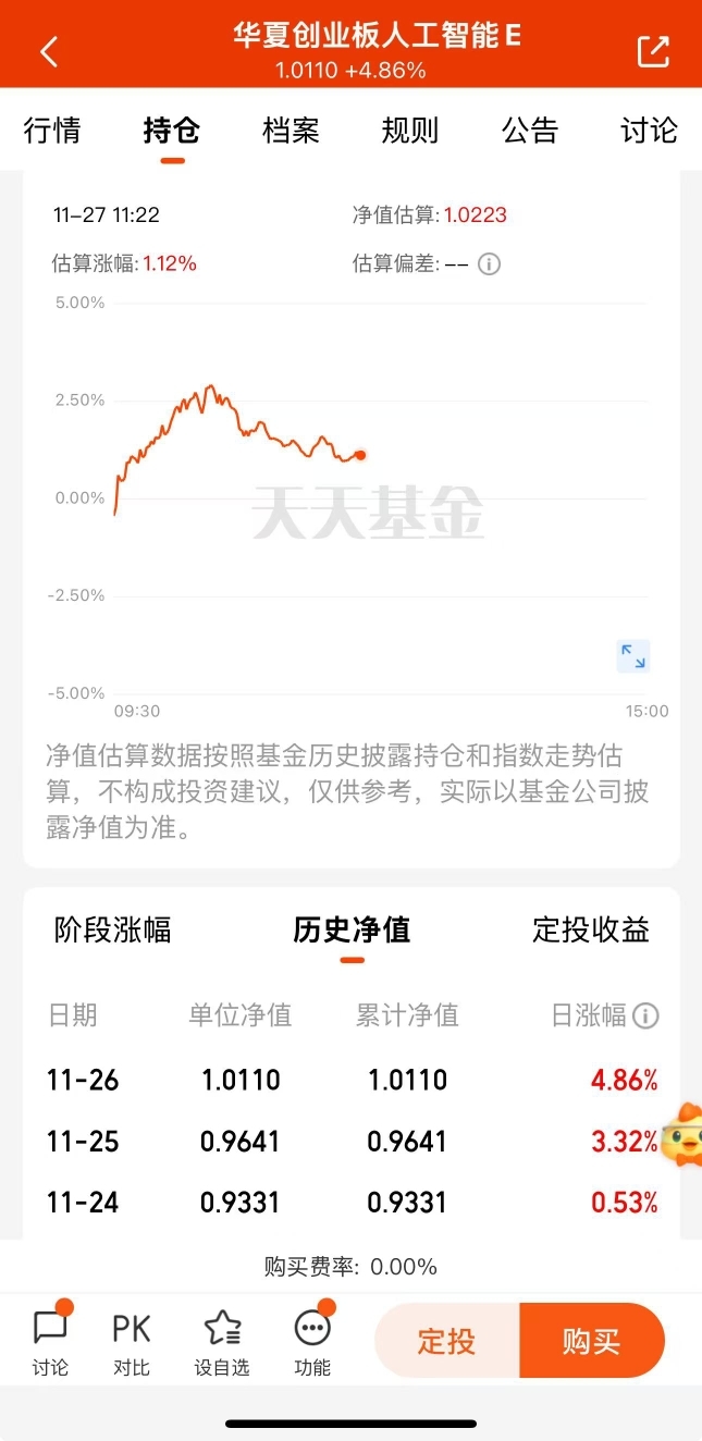 当前人工智能技术正加速与各行业融合,这基连红3天,昨天收益4.86%,场内收益也不错,今天继续反弹中,相信$华夏创业板人工智能ETF发起式联接C$也会有不错的收益