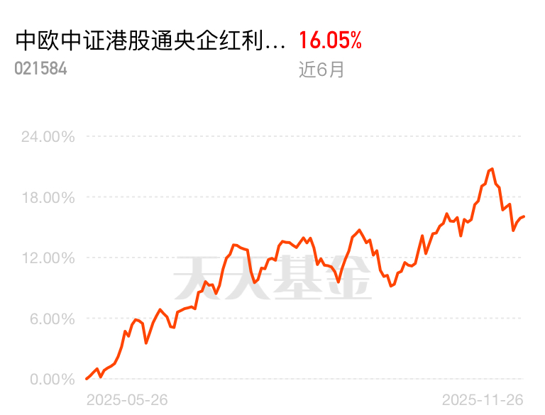 近期港股市场情绪回暖,低估值的央企红利板块涨幅很亮眼,资金流入越来越多。中欧中证港股通央企红利指数(QDII)C近6个月连续上涨16.05%,短期能跟上上涨节奏,长期能靠分红躺赚,投资很灵活。$中欧中证港股通央企红利指数发起(QDII)C$
