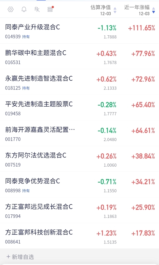 同泰竞争优势混合C(008998) 跌 -0.71%