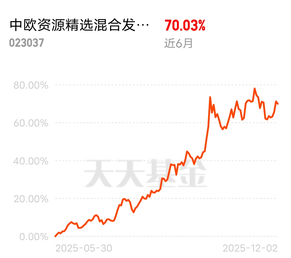 市场风险偏好有所波动,但资源类基金凭借过硬的供需逻辑表现稳健,成为很多人的配置首选。中欧资源精选混合发起 C 近 6 个月 70.03%,在有色金属主动型基金里排名靠前,涨多跌少,上车安心。$中欧资源精选混合发起C$