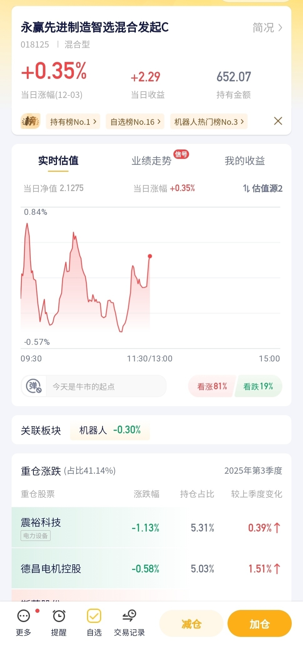 先进制造今天挺给面儿,这基金小涨了点,板块里不少个股表现都还行~