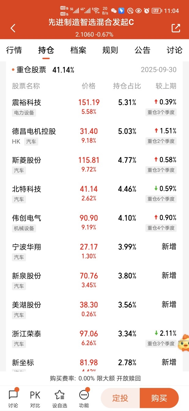总算迎来反弹了,$永赢先进制造智选混合发起C$今天的重仓股都是红红火火的,还不错
